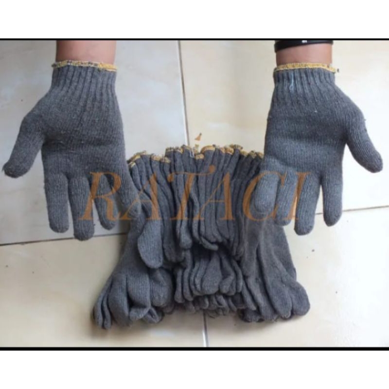 1lusin/12pasang sarung tangan kerja kain rajut abu B6/8 tebal industri proyek las kebun