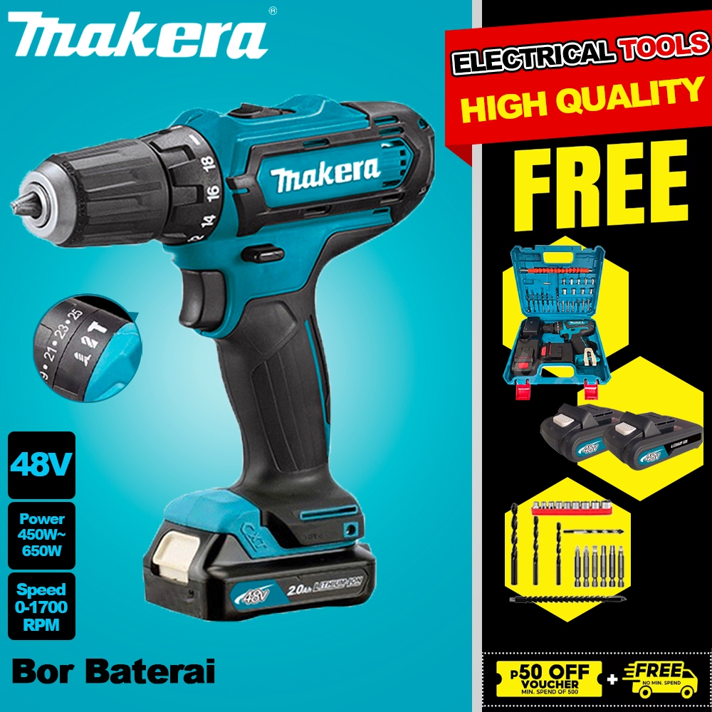 Makera 48V Mesin bor baterai bor bor Impact listrik bor cordless murah 10mm Bor cas