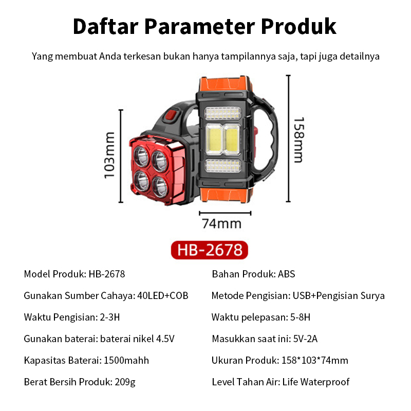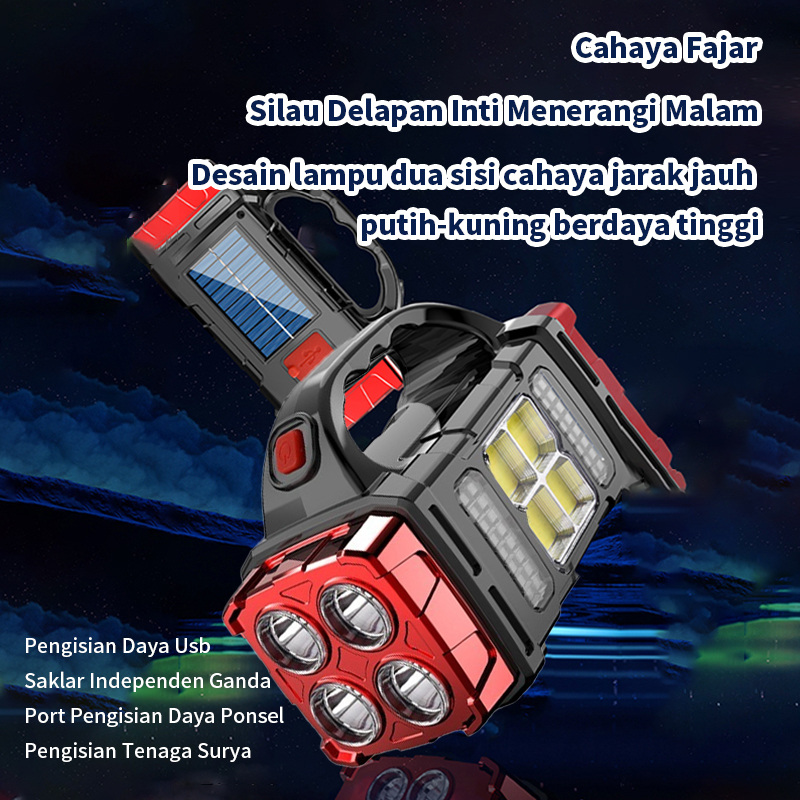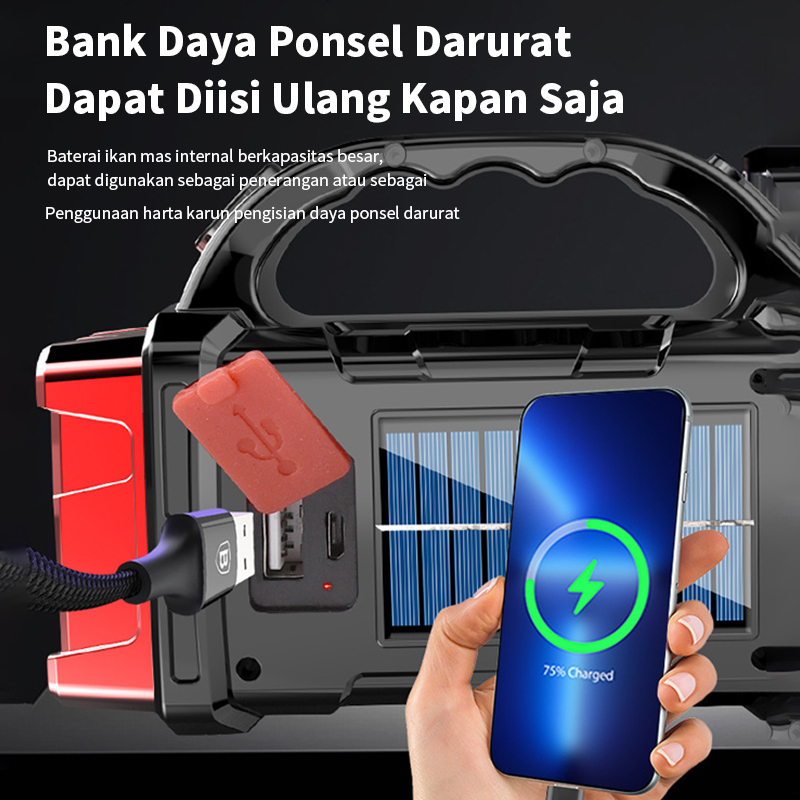 Senter Surya Super Terang Jarak Jauh Emergency USB Recharge Anti Air Punya Daya