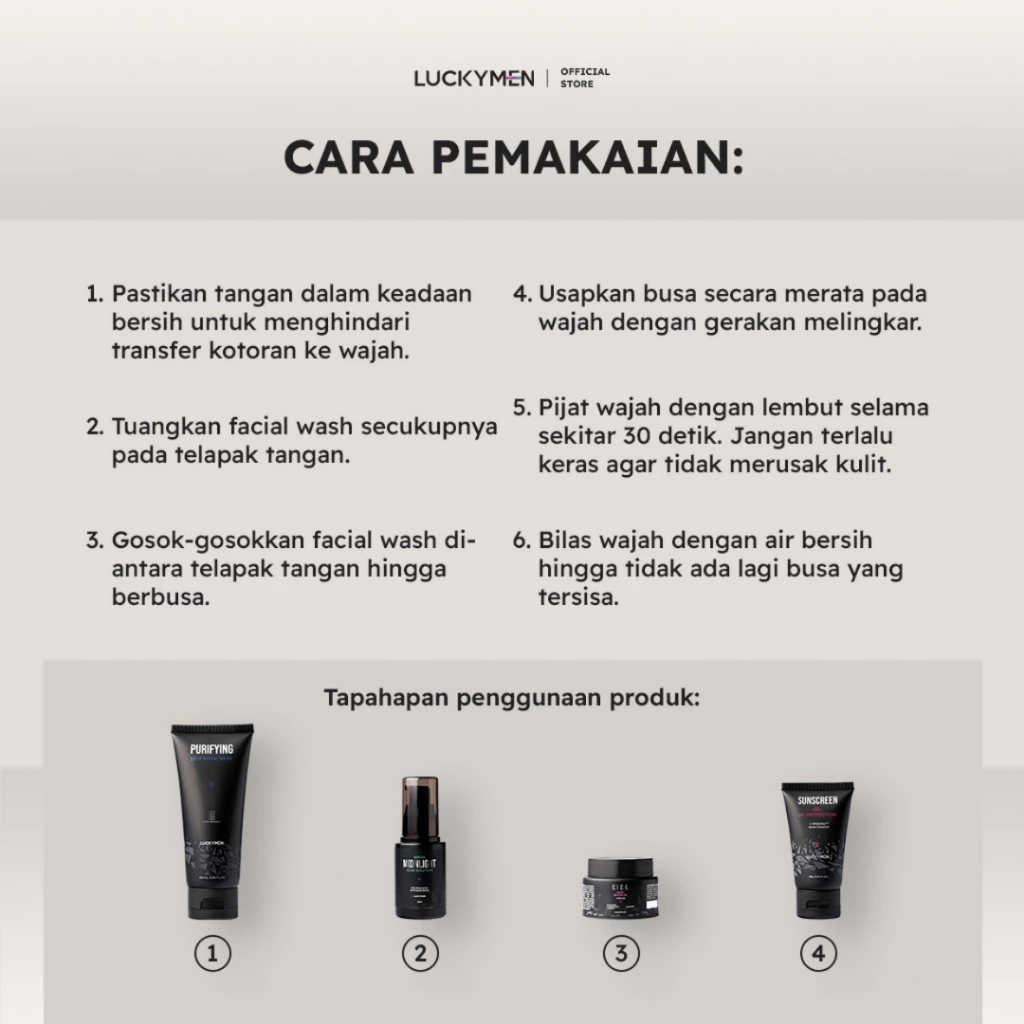Facial Wash LUCKYMEN Purifying Sabun Cuci Muka Ampuh Bersihkan Kotoran Kurangi Minyak Berlebih Dan Atasi Kulit Berjerawa
