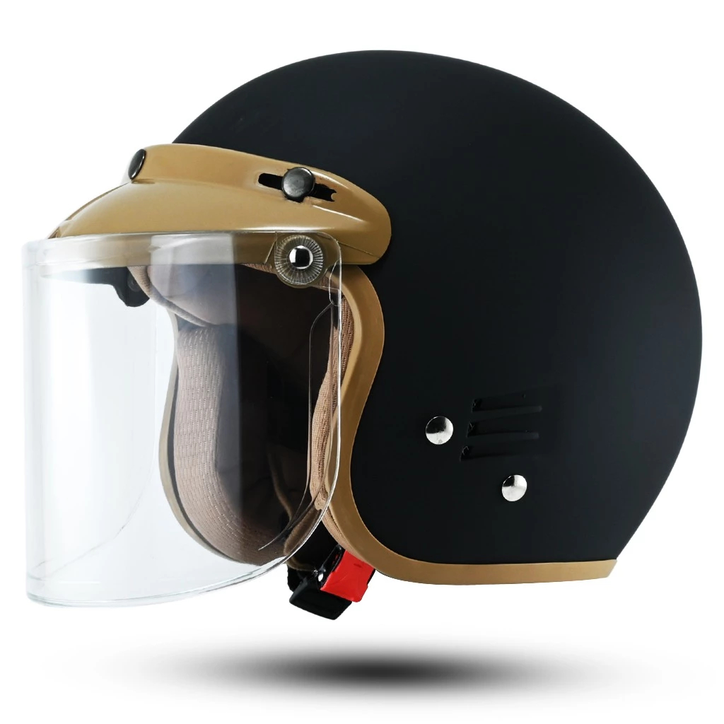 Helm Bipplast CEWEK Retro Bogo Solid LUMINOS Wanita Kekinian Kaca Datar SNI Motorcycle Helm Bogo Wanita