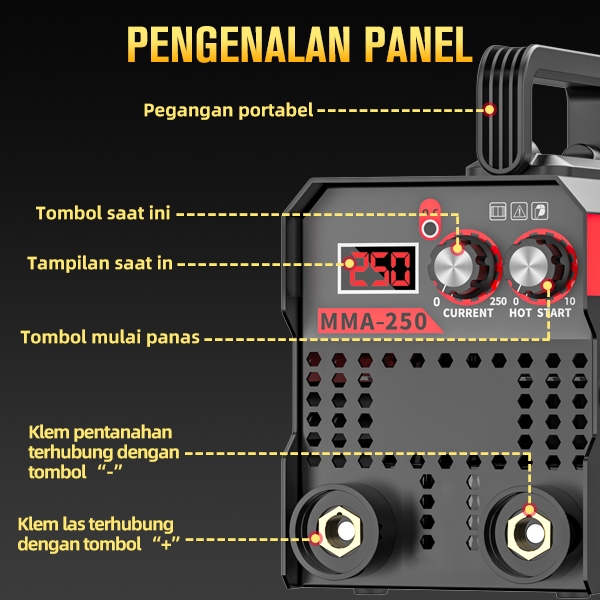 DOMHOAI Mesin Las 450 Watt MMA-250 Inverter Las Listrik Portabel Inverter Logam IGBT Tampilan Digital Definisi Tinggi Gr