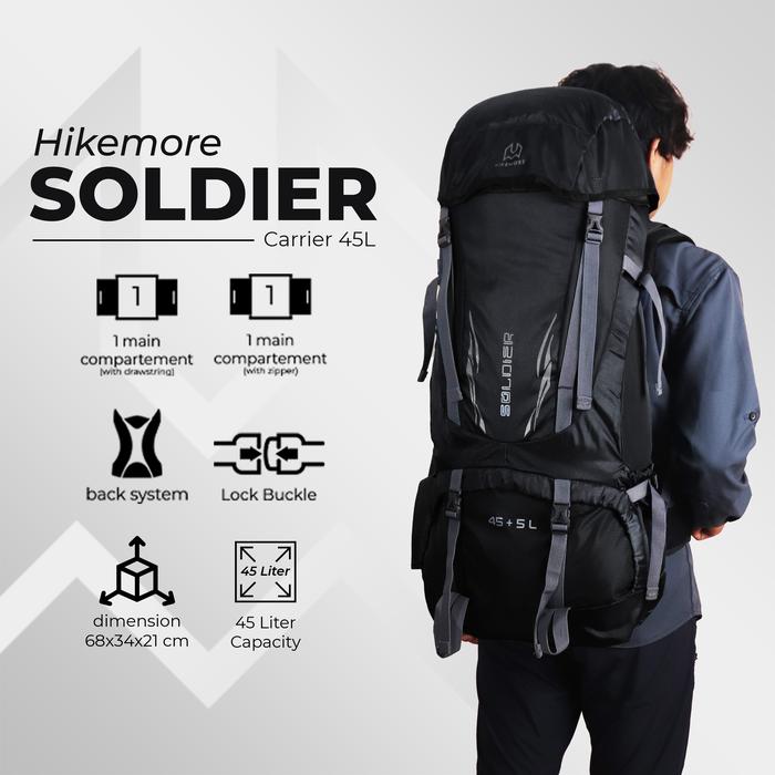 Tas Gunung Hikemore Soldier 45L/65L Original - Black, 65 Liter