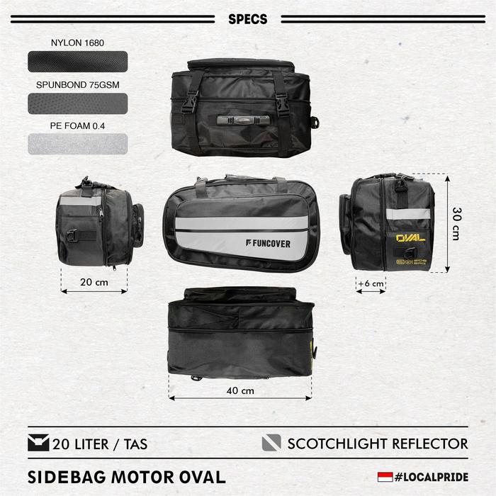 Sidebag Tas Samping Motor Touring Kanan Kiri Funcover Sepasang Side Bag Oval - Hitam-Abu