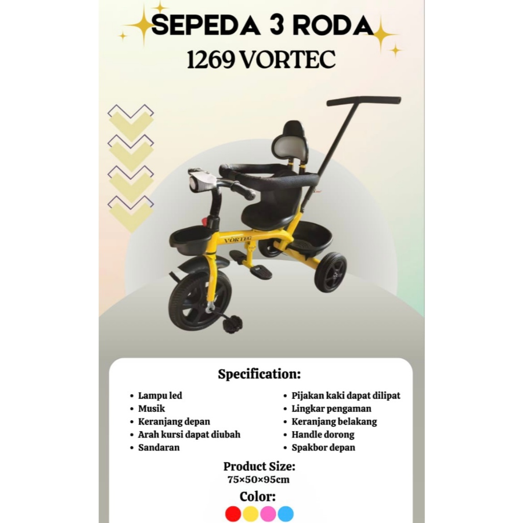 Sepeda Anak Roda Tiga AVIATOR AT308-7 TRICYCLE Sepeda Bayi Balita Roda 3 VORTEC 1269 AT306-7