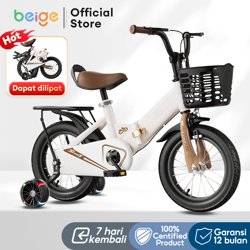 BEIGE Sepeda Lipat Anak 12 14 16 Inch - Sepeda Bayi dengan Roda Bantu Usia 2-8 Tahun