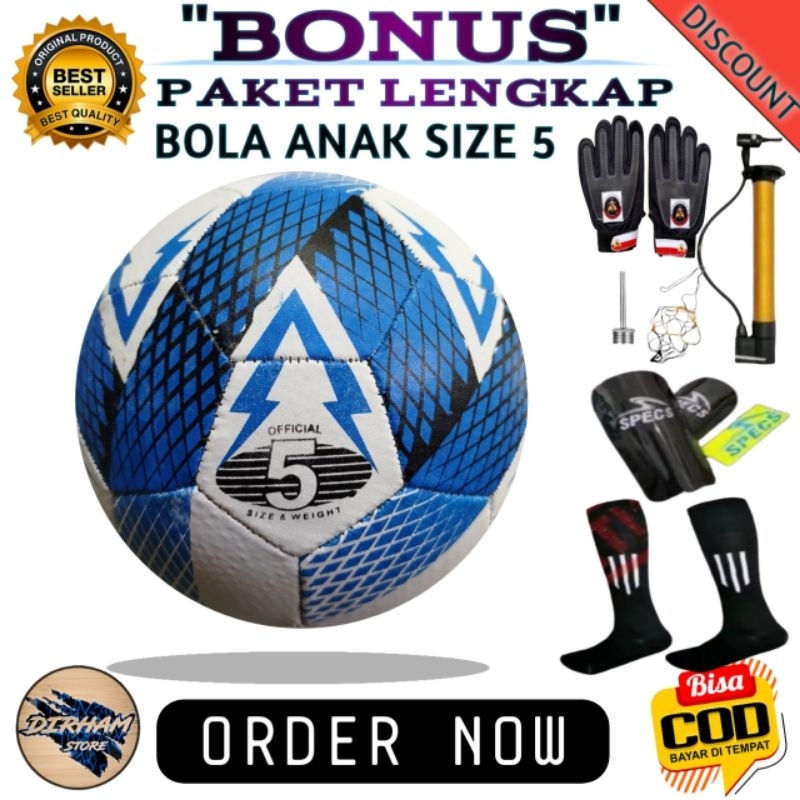 BOLA SEPAK BOLA KAKI ANAK / BOLA BLITER / MURAH SIZE 5 LAPANGAN RUMPUT BONUS SARUNG TANGAN ALAT POMP