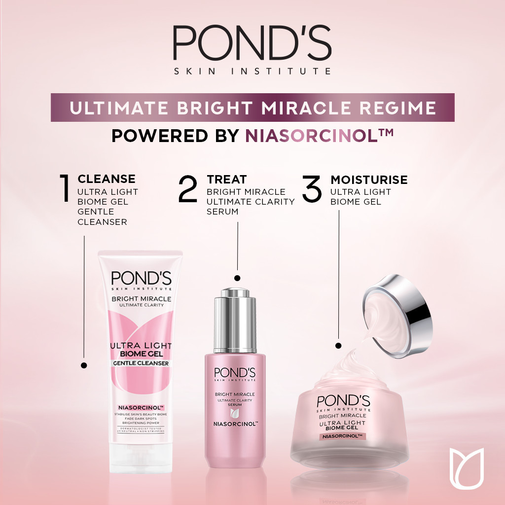 PONDS BRIGHT MIRACLE ULTRA LIGHT BIOME GEL GENTLE CLEANSER BRIGHTENING FACIAL WASH 90GR TWINPACK