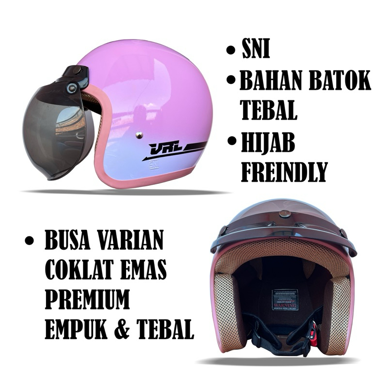 Helm Bogo D3W4SA Gradasi List Pink SNI Kaca Cembung Dan Kaca Datar