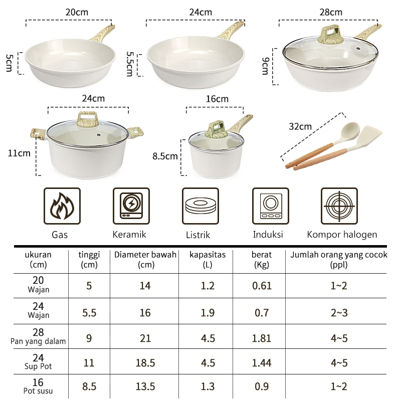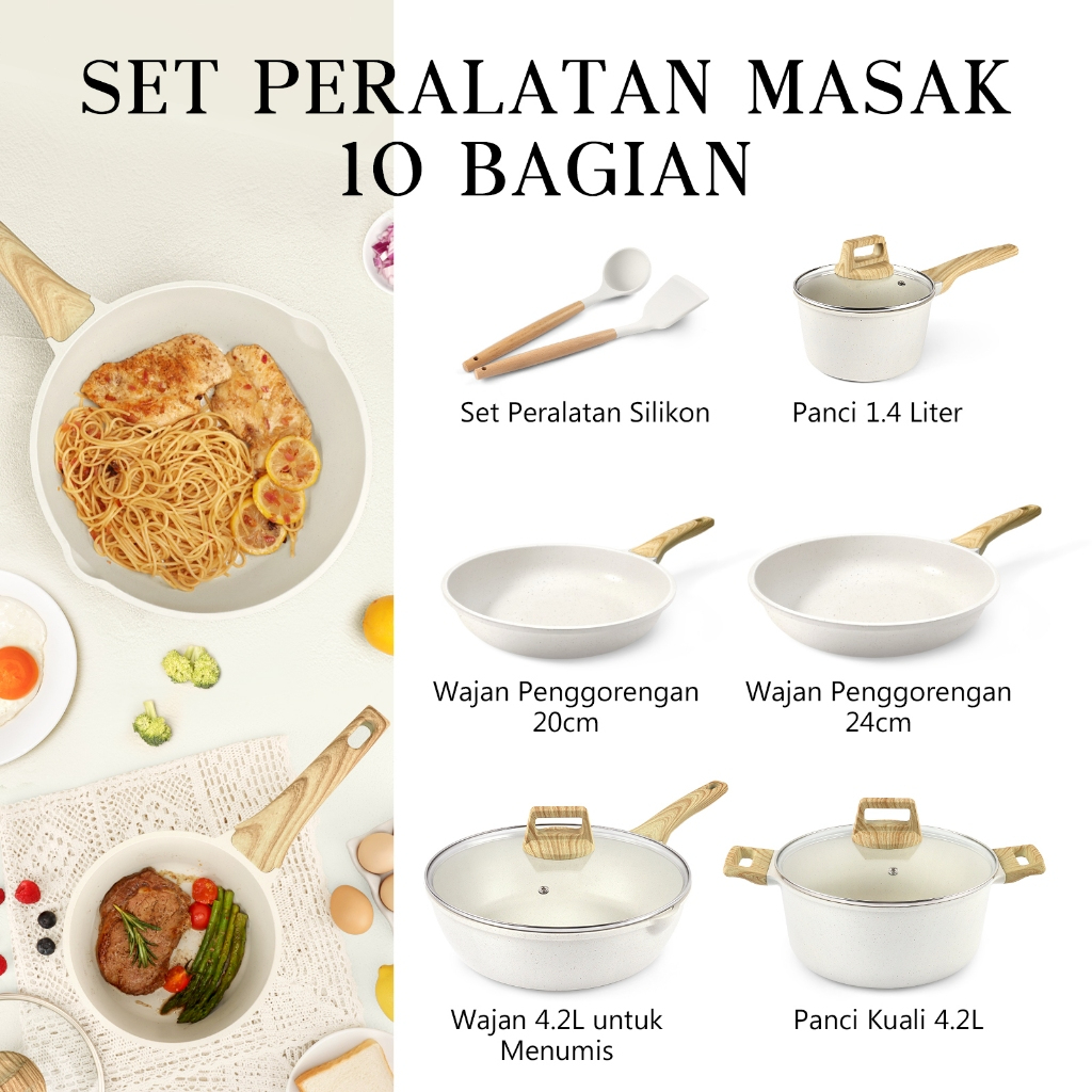 Set Alat Masak Anti Lengket Satu Set Panci Wajan 10pcs GiPP Set Cookware Granit Peralatan Masak Moder