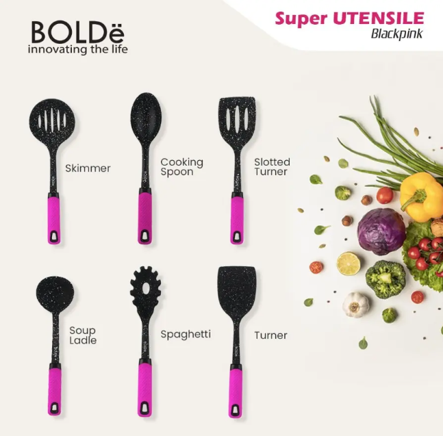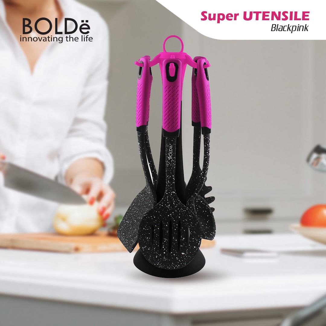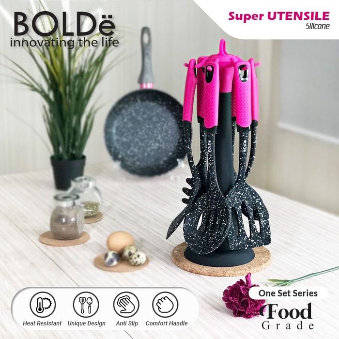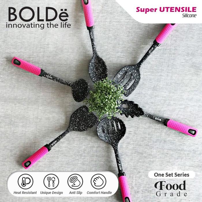 SPATULA BOLDE SUPER UTENSILE SET 7 PCS BLACKPINK SILLICONE / SPATULA SET 7 PCS SILLICONE ANTI LELEH DAN TAHAN PANAS