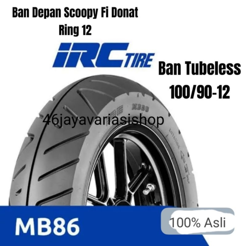 BAN LUAR TUBELESS IRC MB86 100/90-12 BAN DEPAN SCOOPY DONAT FI RING 12 BAN IRC TUBLES 100 90 12