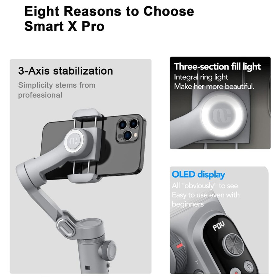 AOCHUAN Smart X PRO Stabilizer 3-AXIS Gimbal Smartphone Whit APP,Light