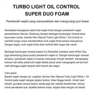 GARNIER Men Turbolight - Intensive 3 In 1 Foam - White Super Duo Foam - Turbolight Matcha Gel- 100ml | TnT Beauty Shop