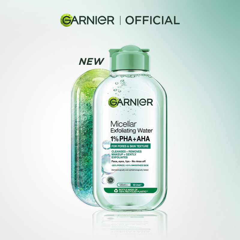 Garnier Micellar Peeling Water 1% AHA + PHA - 125ml (Pembersih Wajah & Make up untuk mengangkat sel kulit mati)