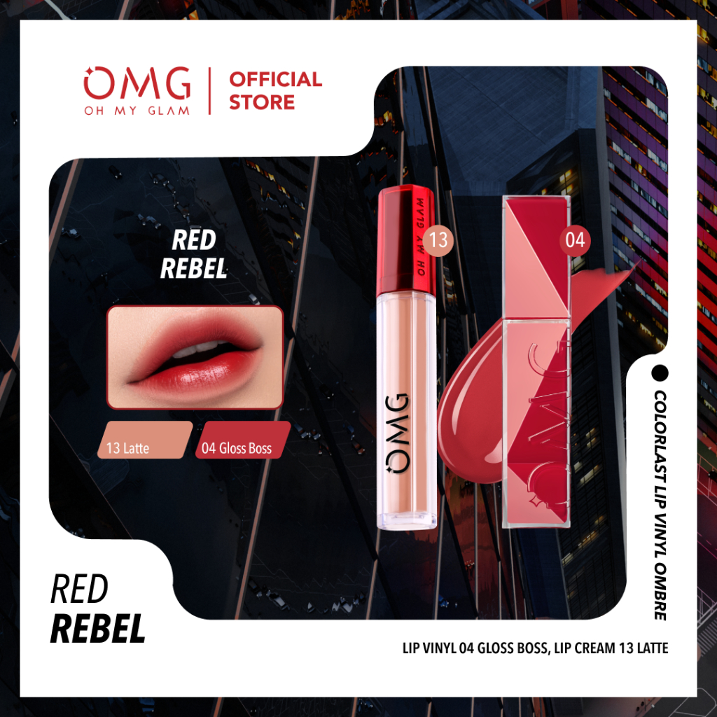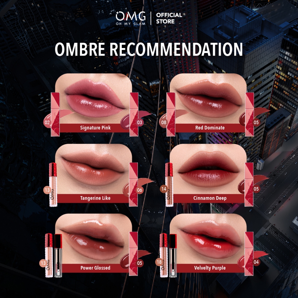 [Bundle Ombre] OMG OH MY GLAM Paket Ombre Lip Vinyl + Lip Cream - Transferproof Gloss - Longlasting Stain- Intense Color