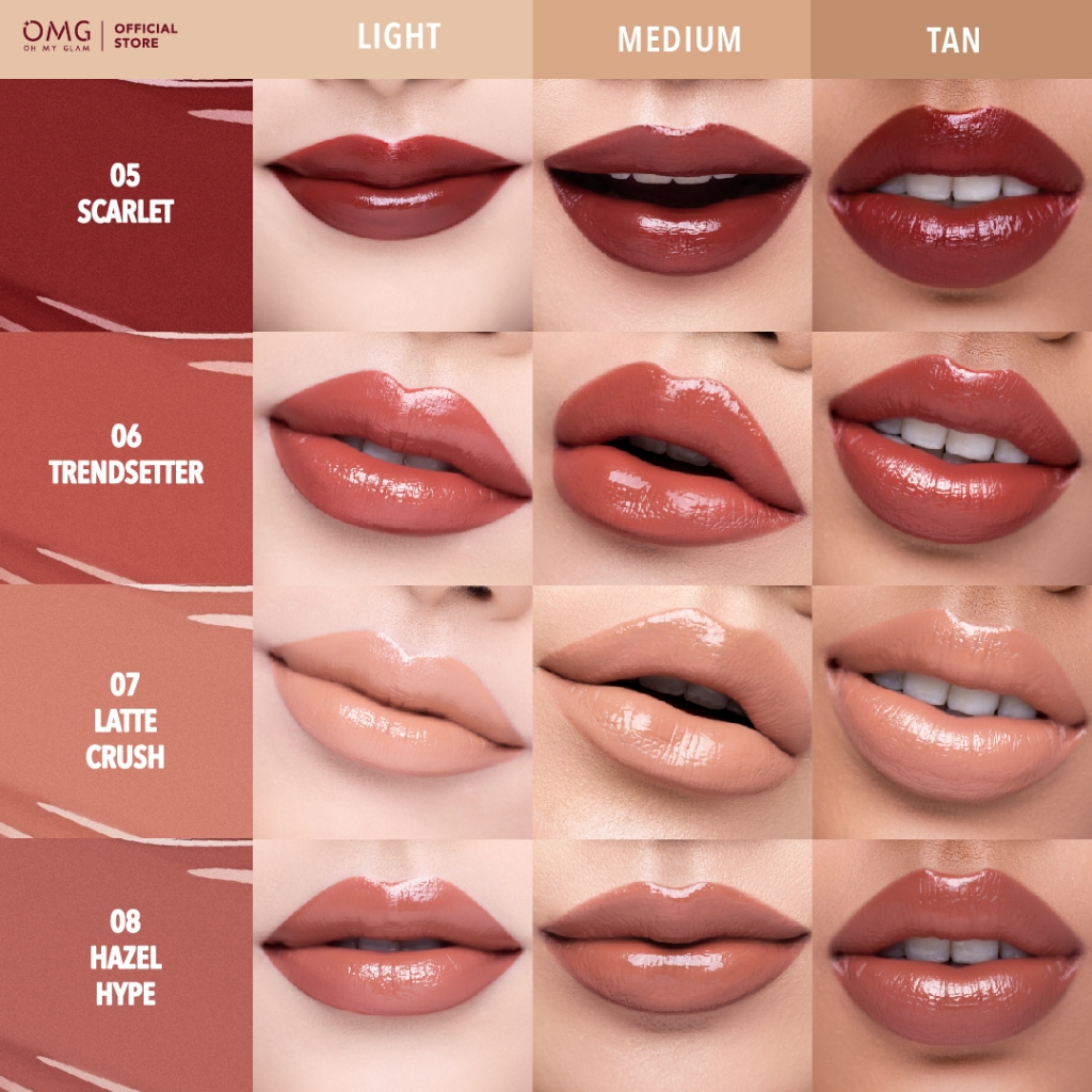Mauve Glow, Tangerin Like, Spicy Red, Rose Gold, Bold Rosewood, Coral Move, ScarletTakeover, Red Rebel, Cherry Lover, Cinnamon Deep, Slaying Nude, Mocha Glam