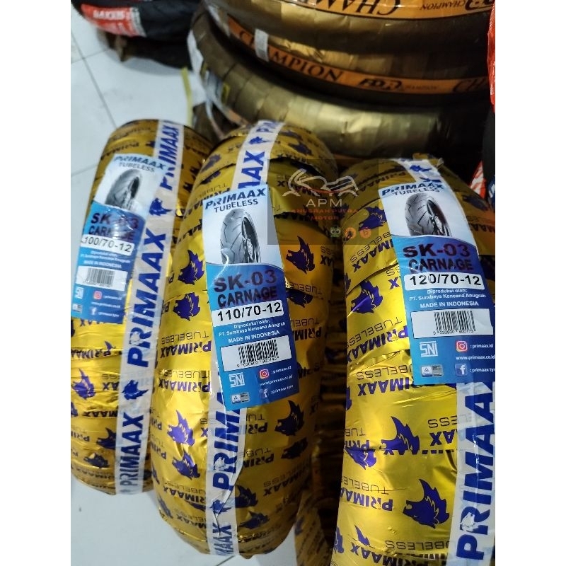 BAN LUAR TUBELESS SK03 PRIMAAX 100 110 120 RING 12 CARNAGE