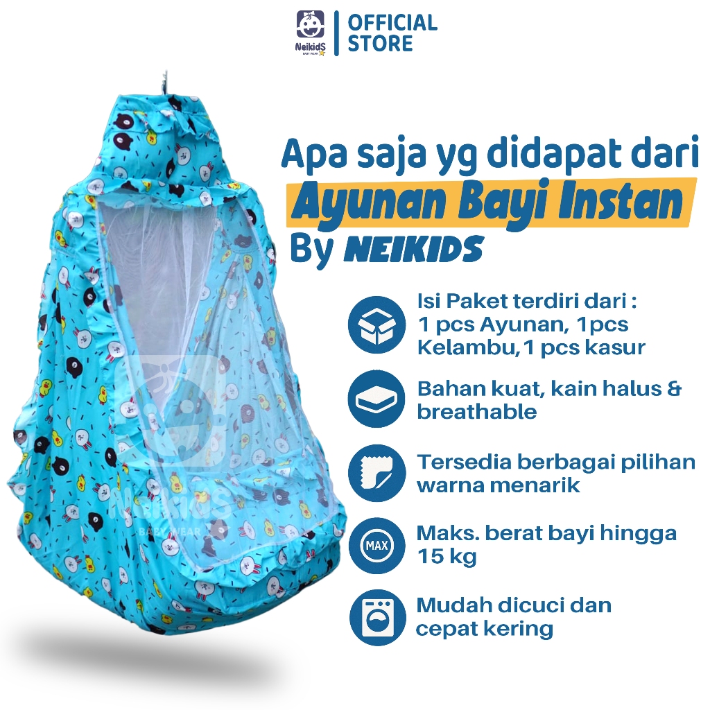 Paket Ayunan Bayi Lengkap – Ayunan Instan + Kasur + Kelambu + Hanger + Per | Nyaman & Praktis!