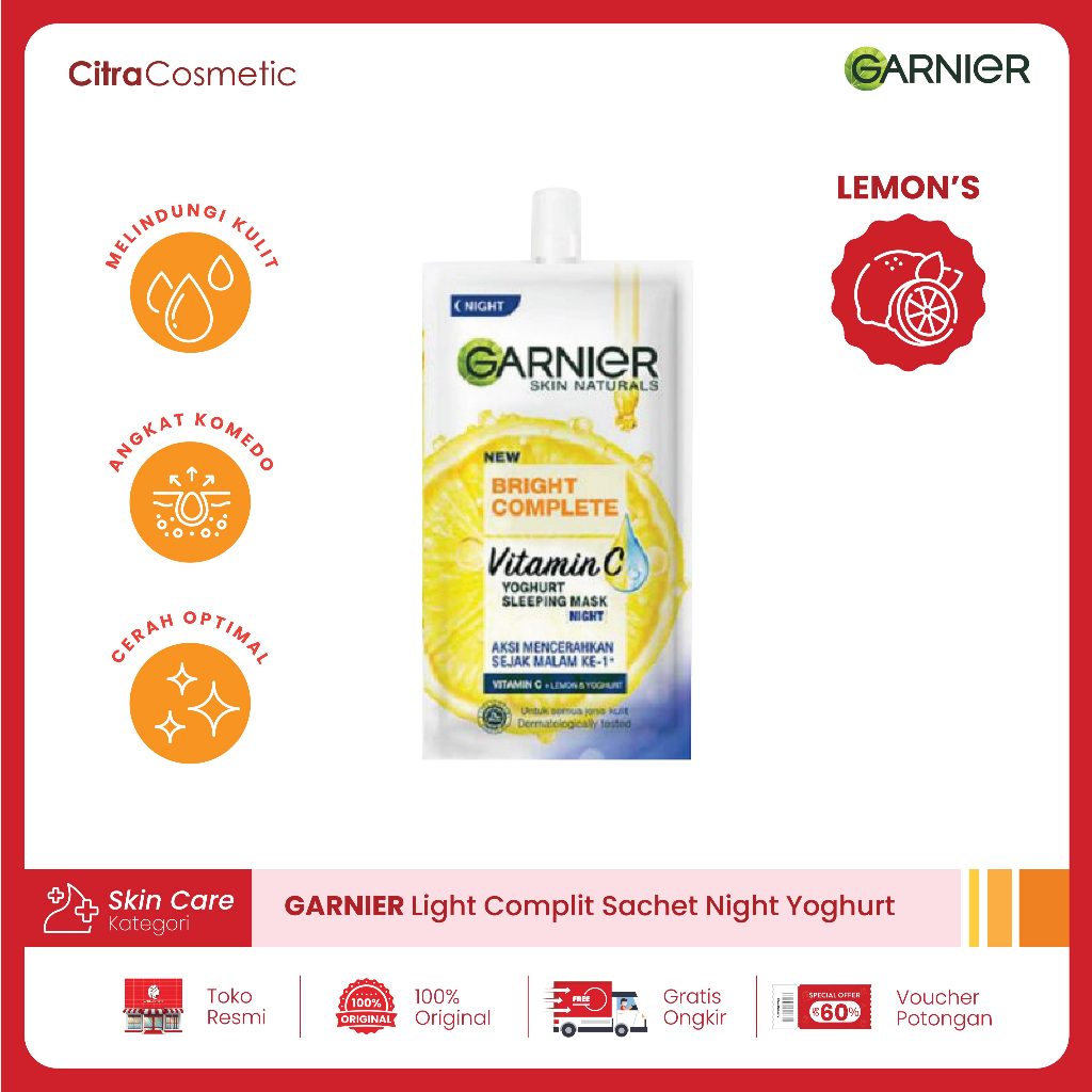 ❤️CitraCosmetic❤️ Garnier Light Complit Sachet Night Yoghurt Brightening 7 Ml