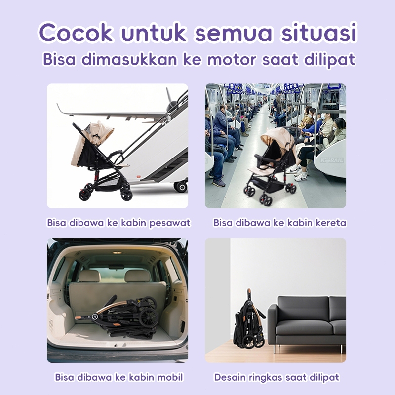 BEIGE Stroller Bayi AutoFold Portabel Travel Bisa Tidur Kapasitas 100kg Ringan Newborn