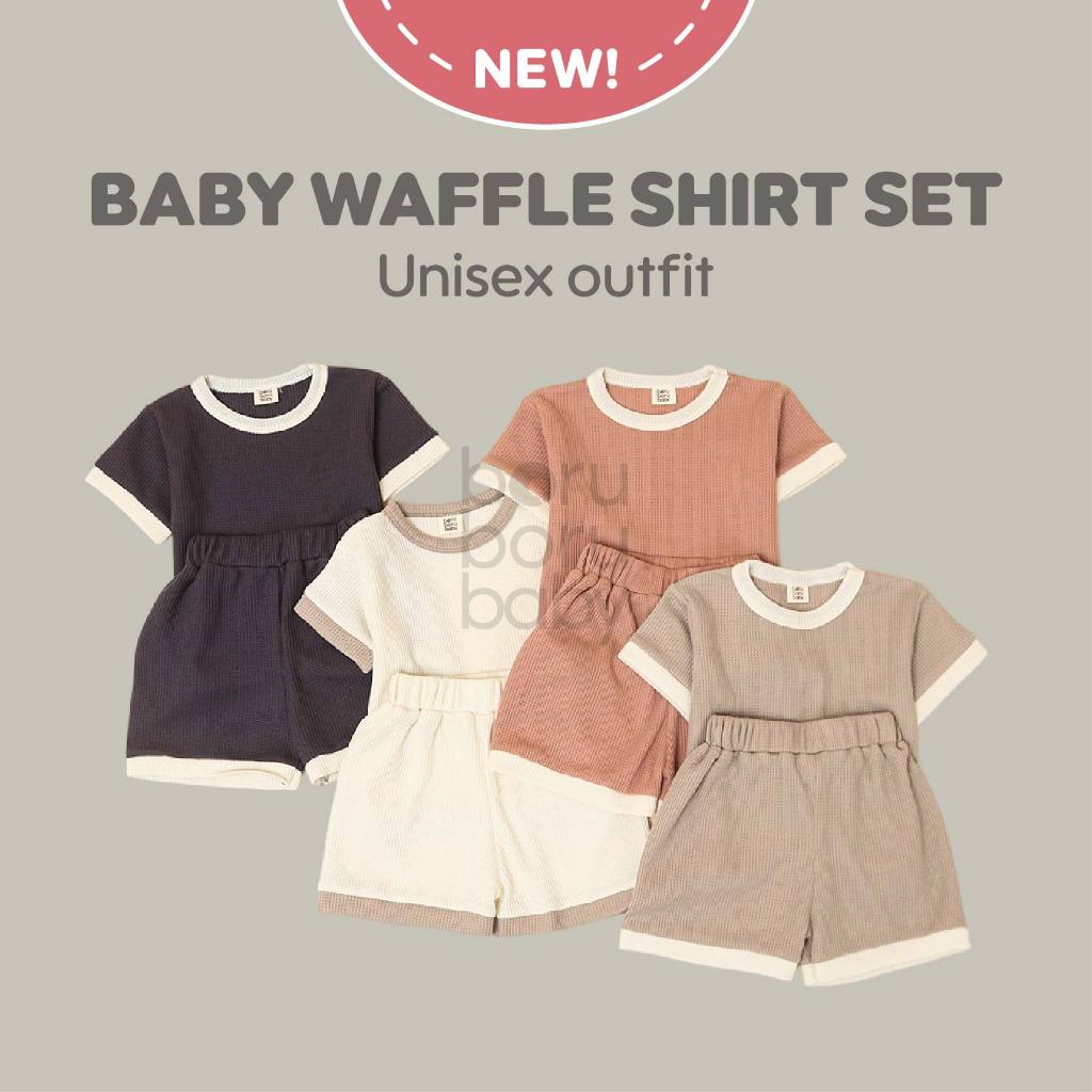 Shirt Set Waffle Unisex - Baju Celana Bayi Waffle - Paket Kaos celana anak