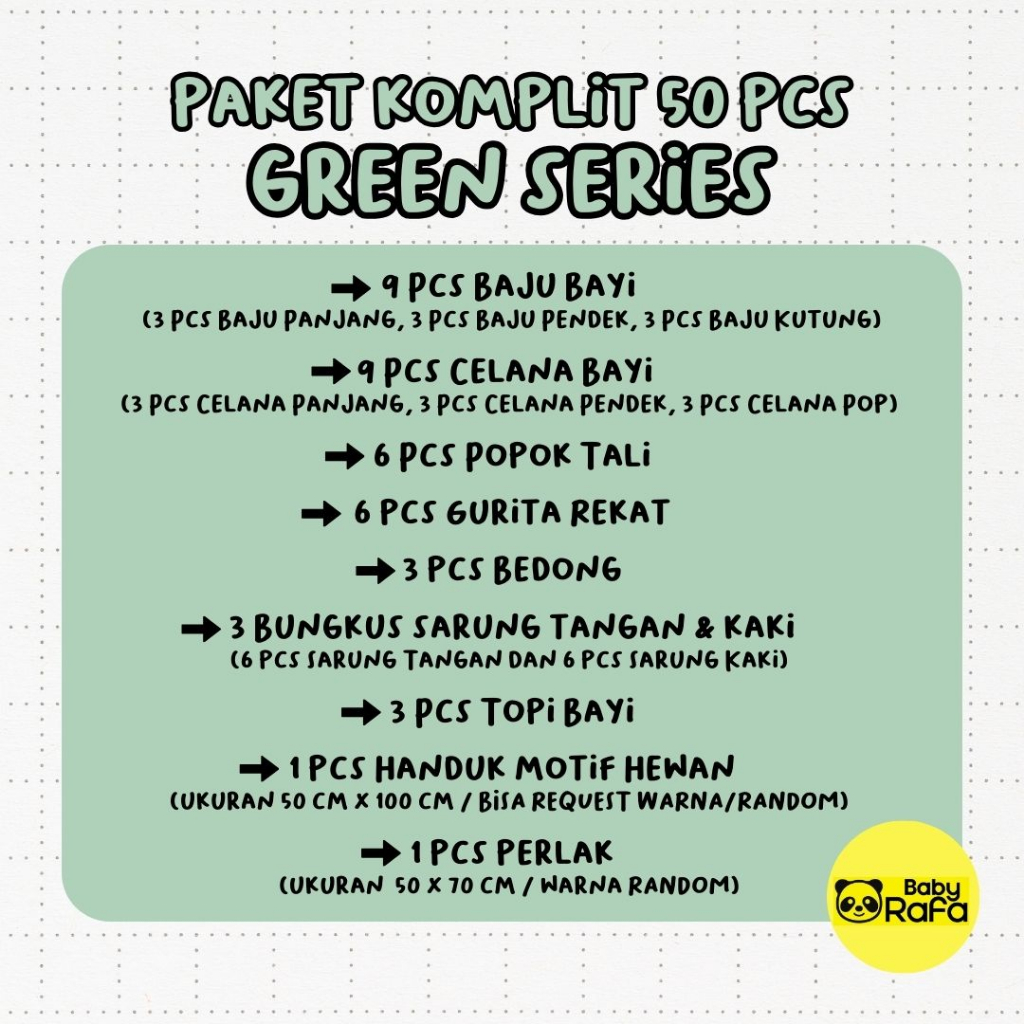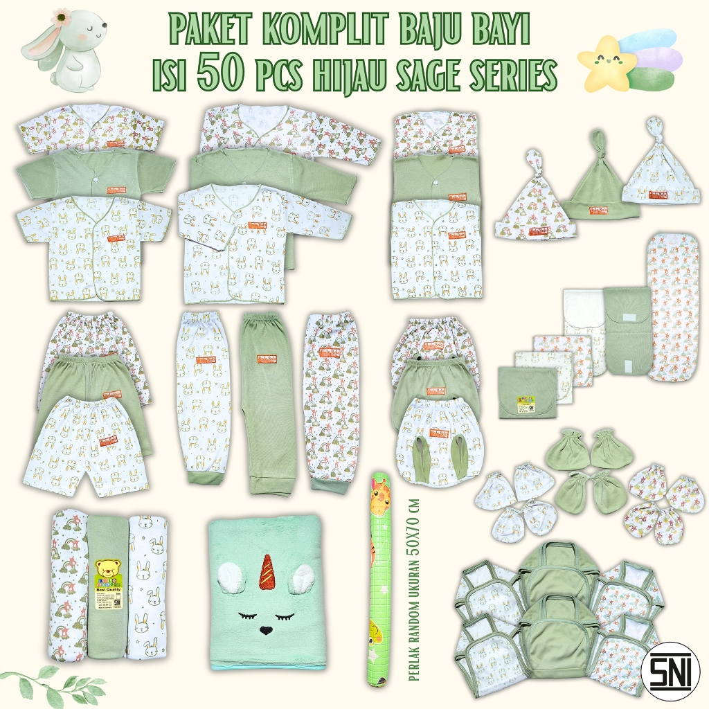 50 PCS Paket Hemat Bundling Baju Bayi Baru Lahir Setelan Newborn 0 sd 3 Bulan Serian Hijau Sage
