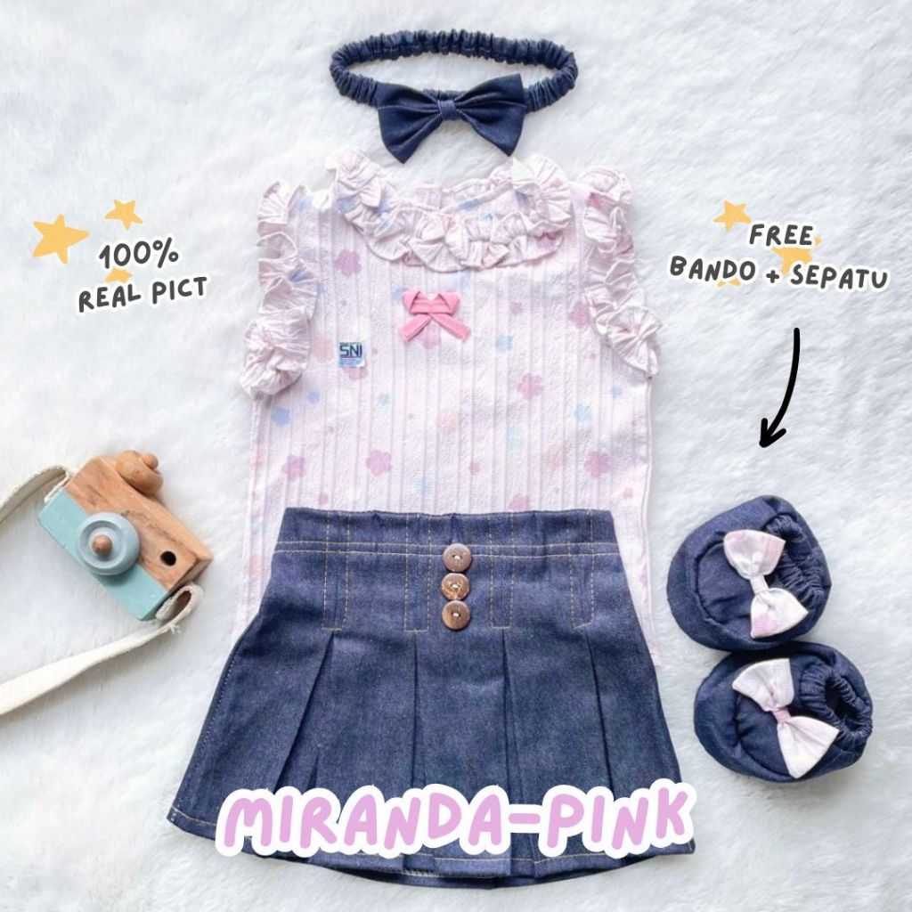 MIRANDA girl set ( free bando + sepatu) newborn usia 0-9 bulan baju bayi setelan lucu katun