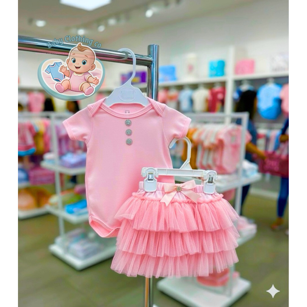 Setelan Bayi Jumpsuit Hias Kancing + Rok Tutu Cantik