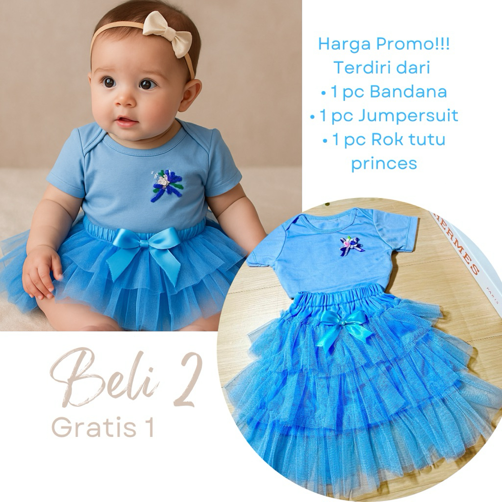 Baby Girl Rainbow Tutu Set – Setelan Bayi Lucu Full Tulle Premium, Free Bandana