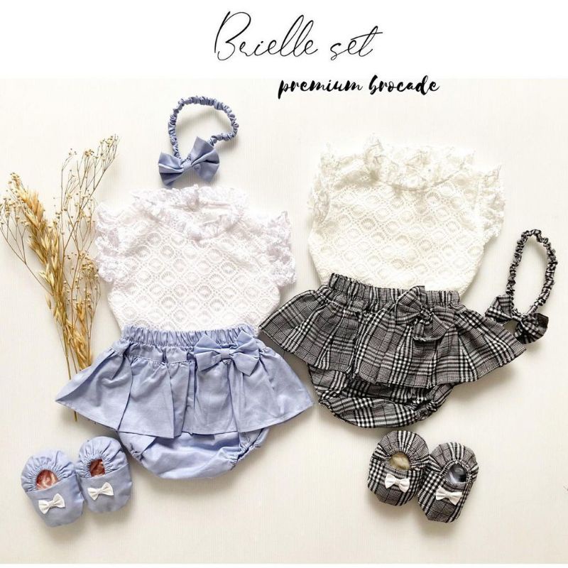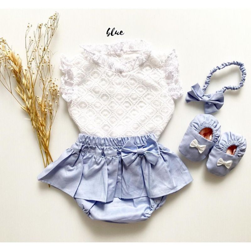 [GET 4in1] Set jumper bayi perempuan 0-12 bulan set kemeja brukat bloomers free bando sepatu BRIELLE SET