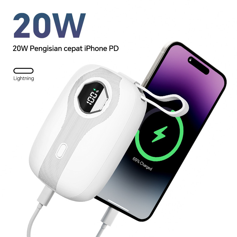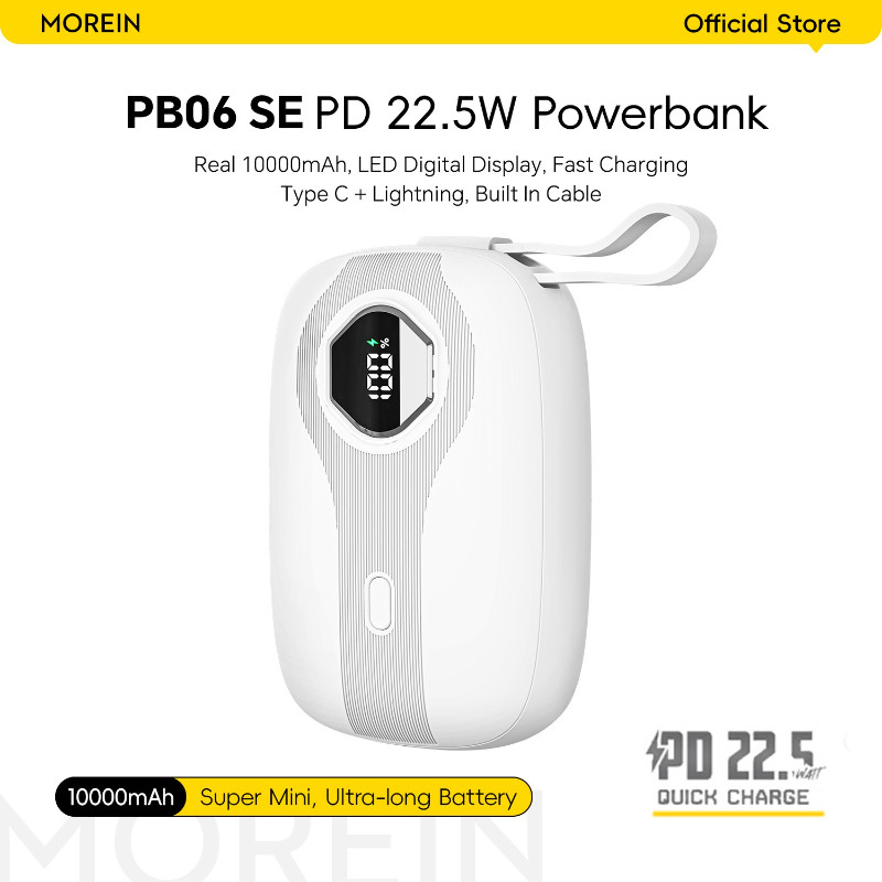 [SUPER MINI] Morein PB06 SE Powerbank 10000mah PD 22.5W Fast Charging LED Battery Display Built-in Cable Type C + Lightn