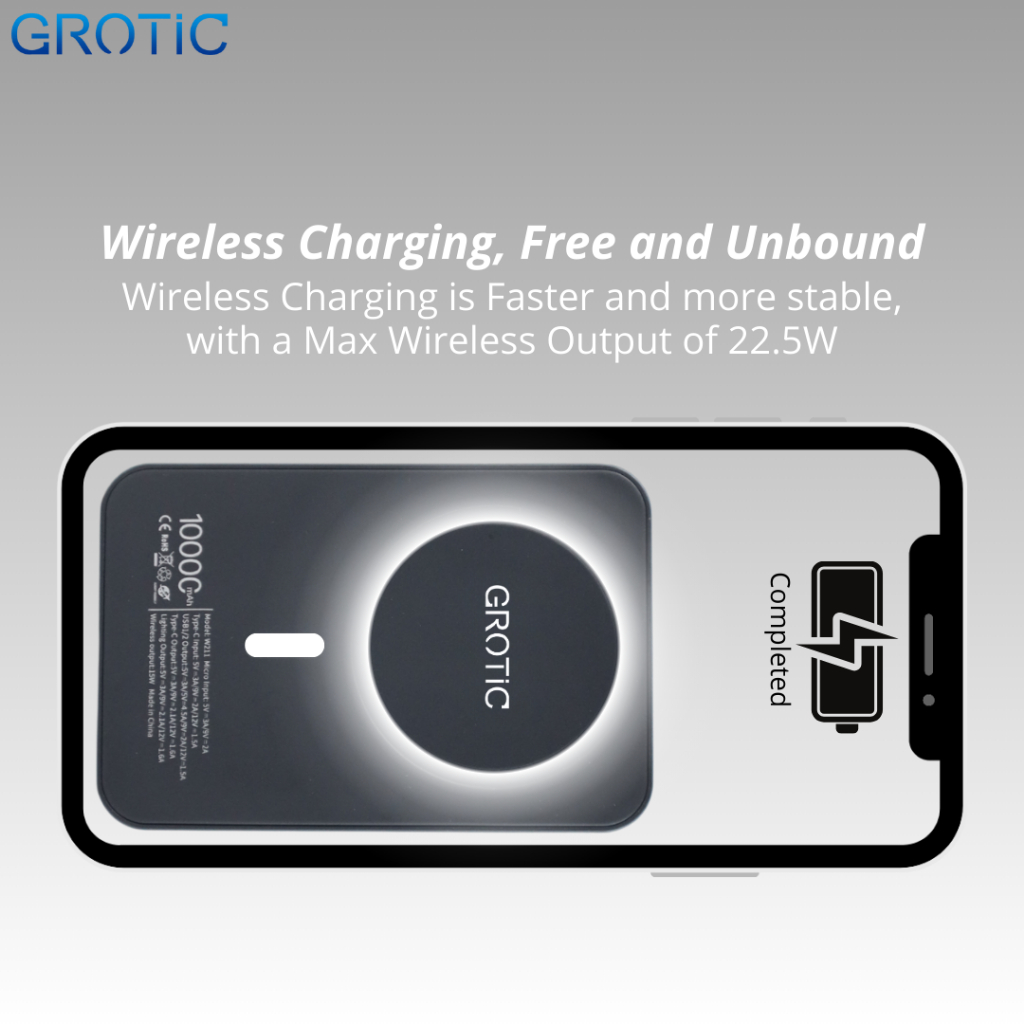 GROTIC Wireless Power Bank Magnetic Magsafe Fast Charging PD 20W 10000mAh