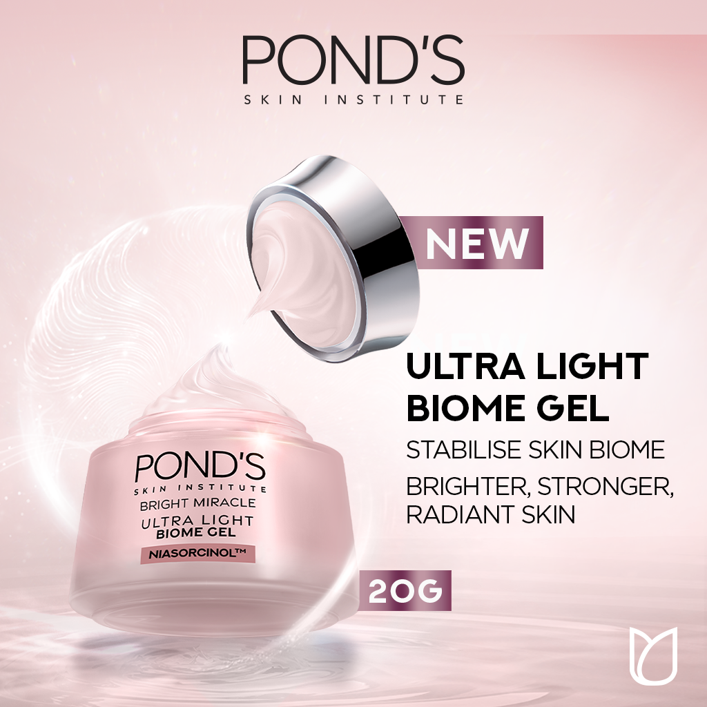 PONDS BRIGHT MIRACLE ULTRA LIGHT BIOME GEL BRIGHTENING MOISTURIZER GEL 20GR