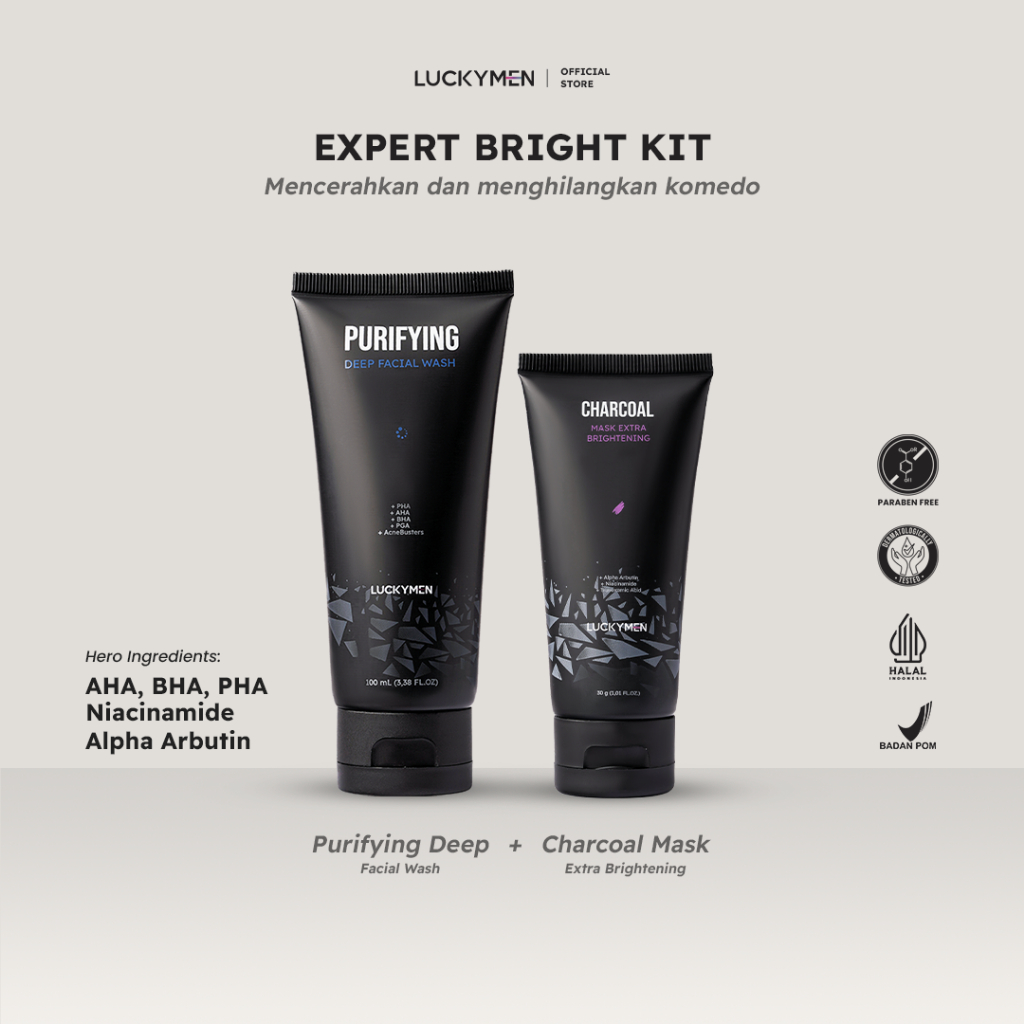 UPGRADE FORMULA Expert Bright KitPurifying Deep Facial Wash 1pcs+ Charcoal Mask Extra Brightening 1pcs Mencerahkan dan M