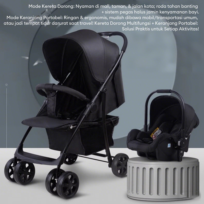 BEIGE Stroller + Car Seat Kursi Mobil Anak 4in1 Bayi Stroller Bayi AutoFold