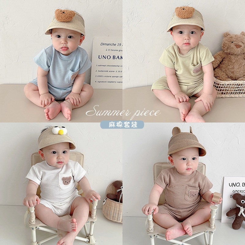 SET BABY BEAR LOGO BORDIR / SETELAN BAJU BAYI BEAR LOGO BORDIR