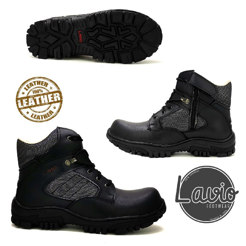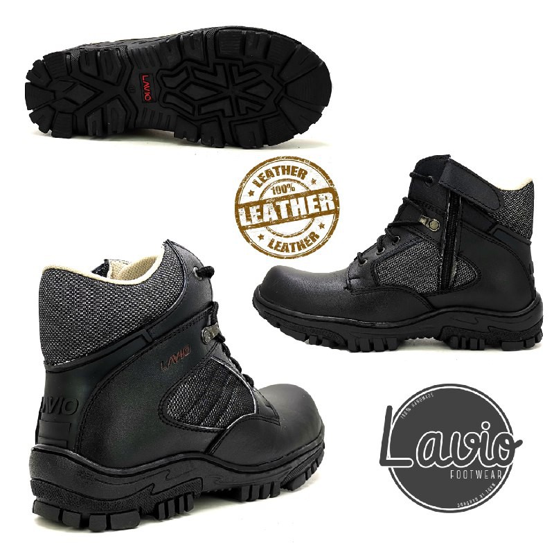 SEPATU BOOTS SAFETY PRIA LAVIO DNS KULIT ASLI ORIGINAL TERLARIS SATPOL PP SATPAM