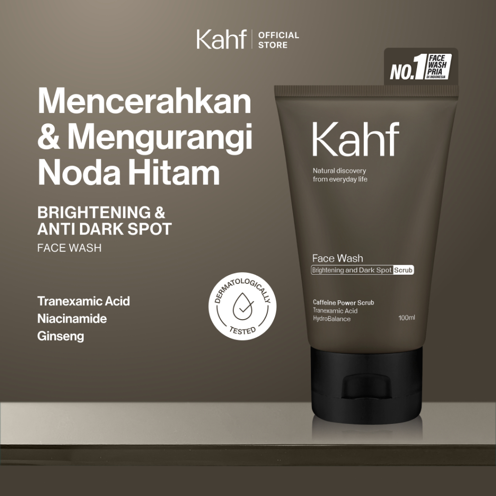 Kahf Face Wash Brightening and Dark Spot Scrub 100 ml Sabun Cuci Muka Pria Anti Noda Hitam Bekas Jerawat Suitable for Da