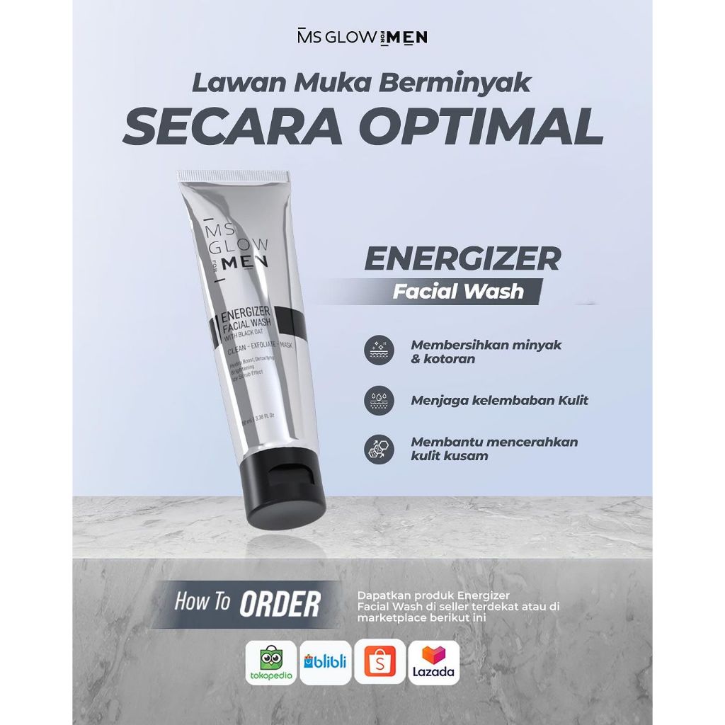 MSGLOW ENERGIZER FACIAL WASH FOR MEN SABUN CUCI MUKA PRIA PEMUTIH WAJAH PRIA