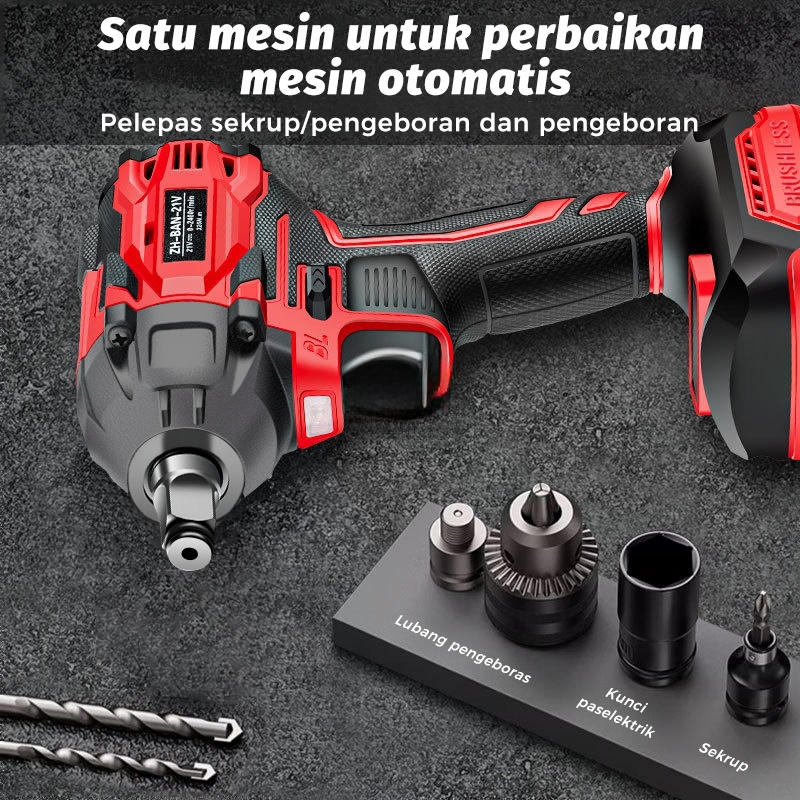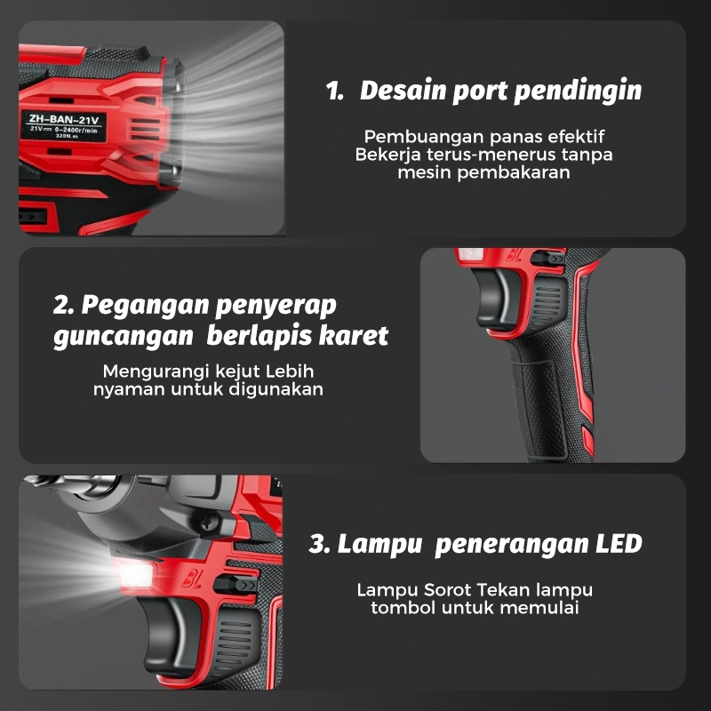 Bor Listrik / 21V Cordless Impact Wrench / 320N.M Mesin Impact Baterai Untuk Baut Mobil Torsi Besar