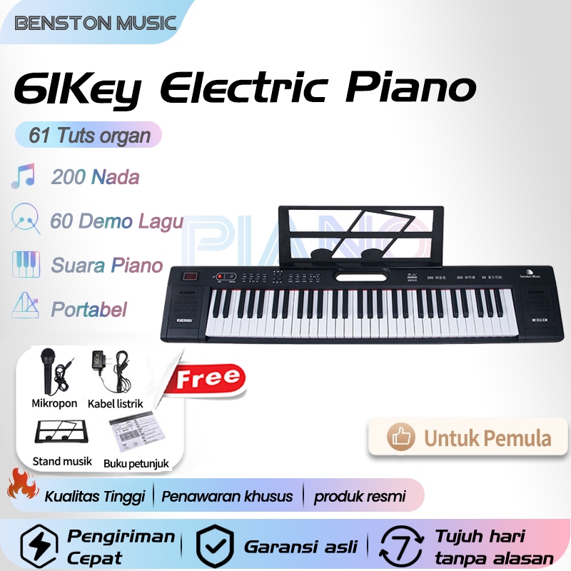 Benston Music Keyboard Elektrik 61 Tuts Keyboard Untuk Pemula Portabel Keyboard Elektrik Cerdas Banyak Nada