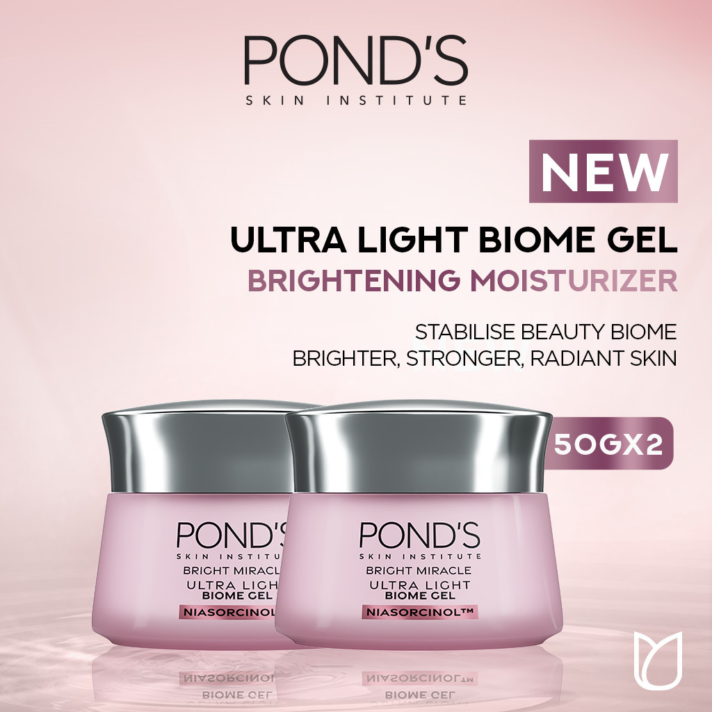 PONDS BRIGHT MIRACLE ULTRA LIGHT BIOME GEL BRIGHTENING MOISTURIZER GEL 50GR Twinpack