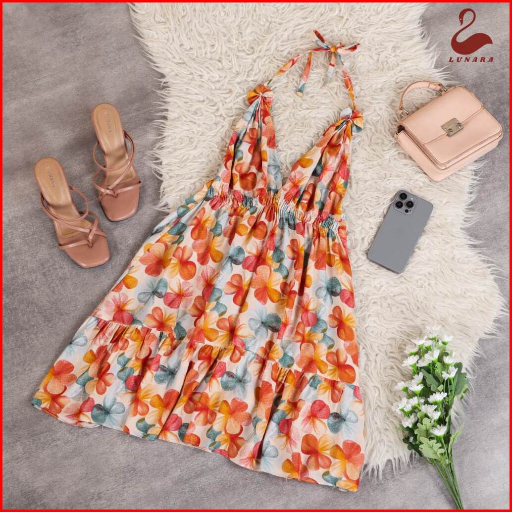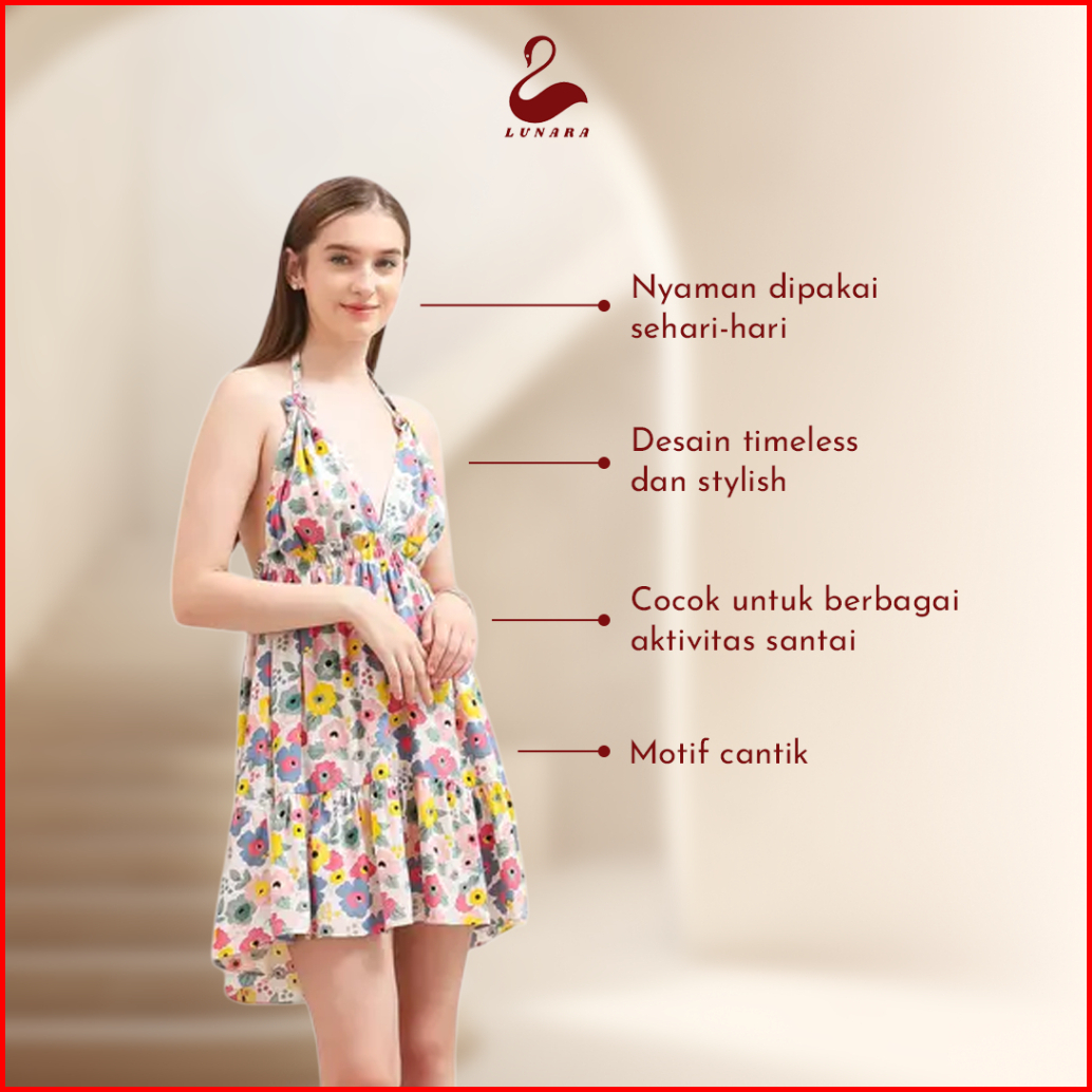 Lunara Mini Dres Luna Piyama Wanita Rayon Premium Motif Bunga Pohon Santai Nyaman Bahan Adem Lembut Dan Dingin Ideal Unt
