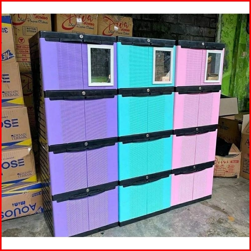 Lemari Plastik Aquose Mini Susun 4 Dan 3 Model Rak Kaca Kunci Lemari Pakaian