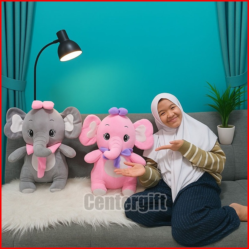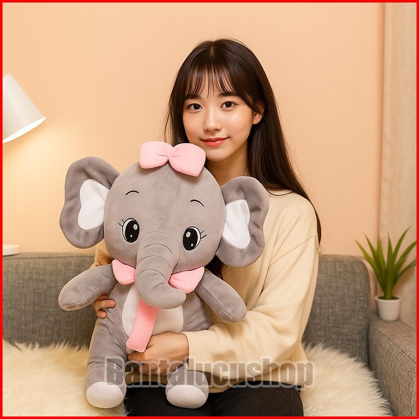 Boneka Gajah Duduk Jumbo 55cm Lucu Imut Bahan Premium Hadiah Ulang Tahun Anak Pasangan