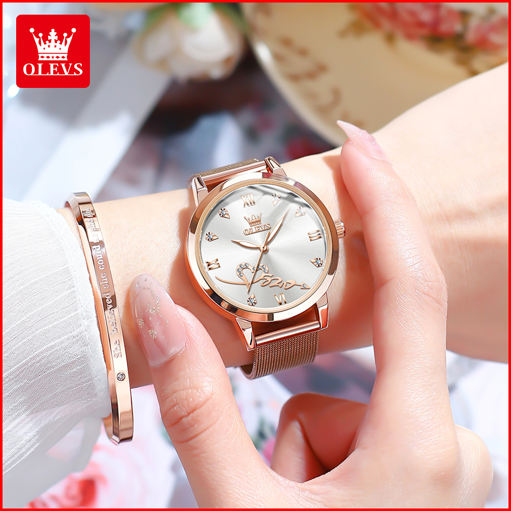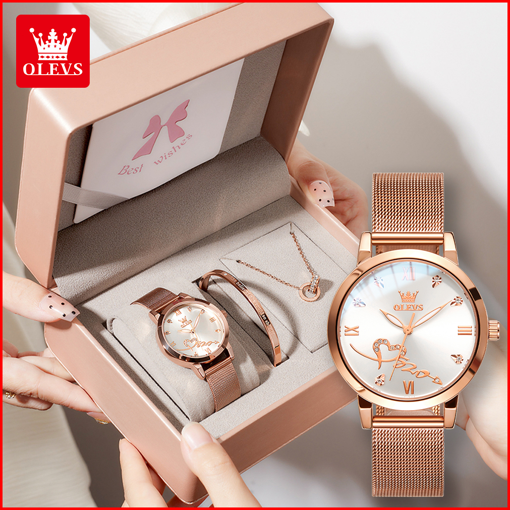 Olevs Jam Tangan Wanita Anti Air Original Terbaru 2025 Hadiah Mewah Set Anti Karat Kalung Gelang Elegan Kalender Analog