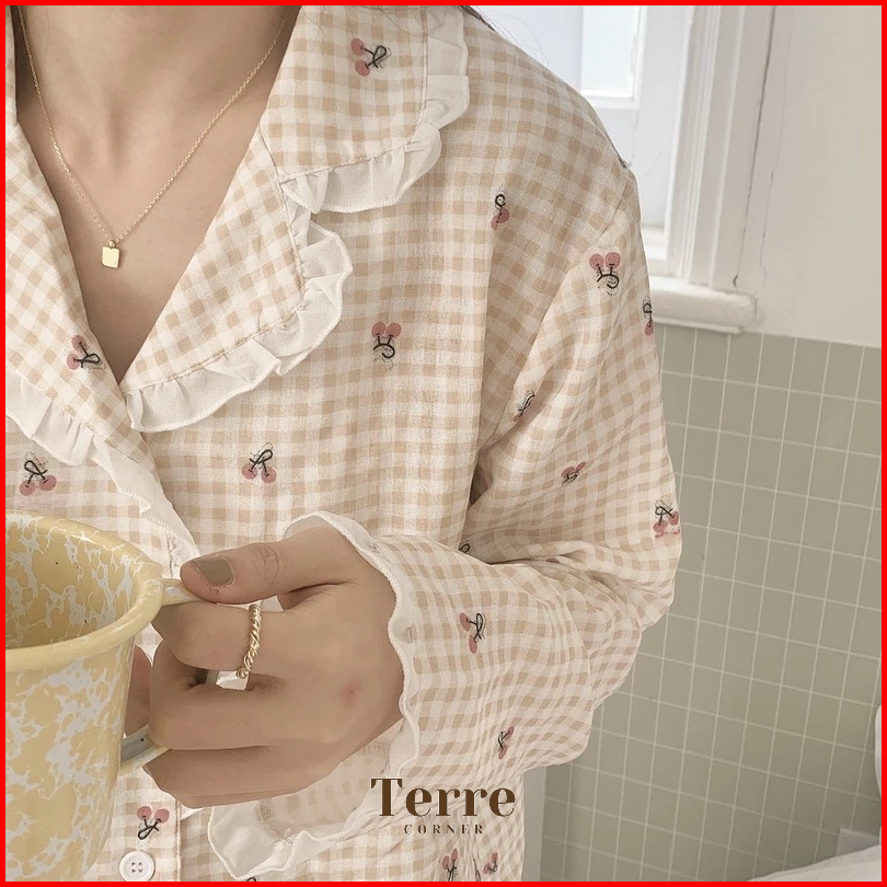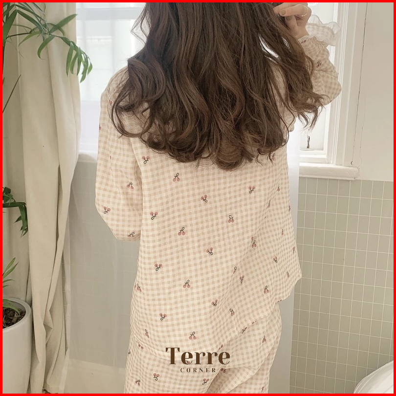 Baju Tidur Wanita Piyama Korea Setelan Baju Tidur Wanita Somin Sleepwear Cream Piyama Wanita Lengan Panjang Baju Tidur W