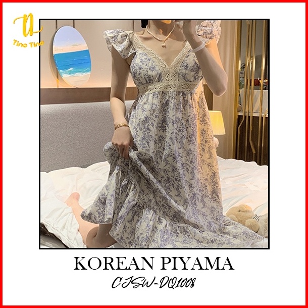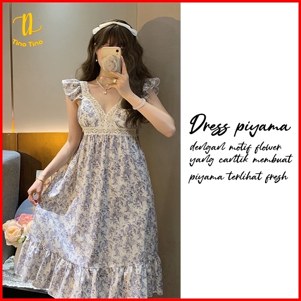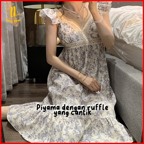 Tino-tino Dq1008 Baju Tidur Dress Wanita Vintage Ruffle With Lace Dengan Bantalan Dada Sleepwear Dress Wanita Dengan Mot