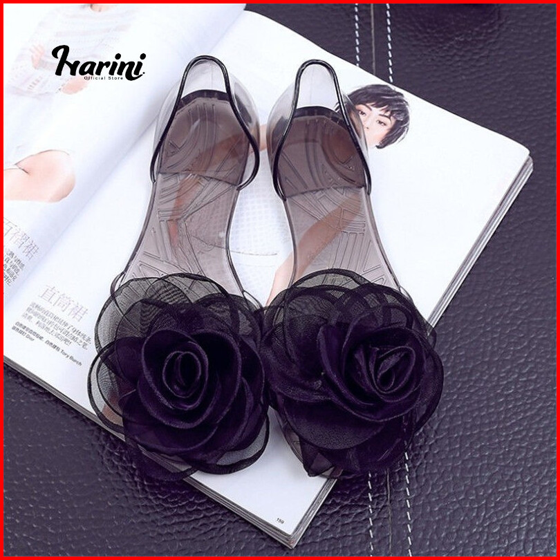 Sepatu Flat Kaca Flower Bunga Mawar Sandal Jelly Karet Flat Shoes Best Seller Sepatu Sendal 186-a
